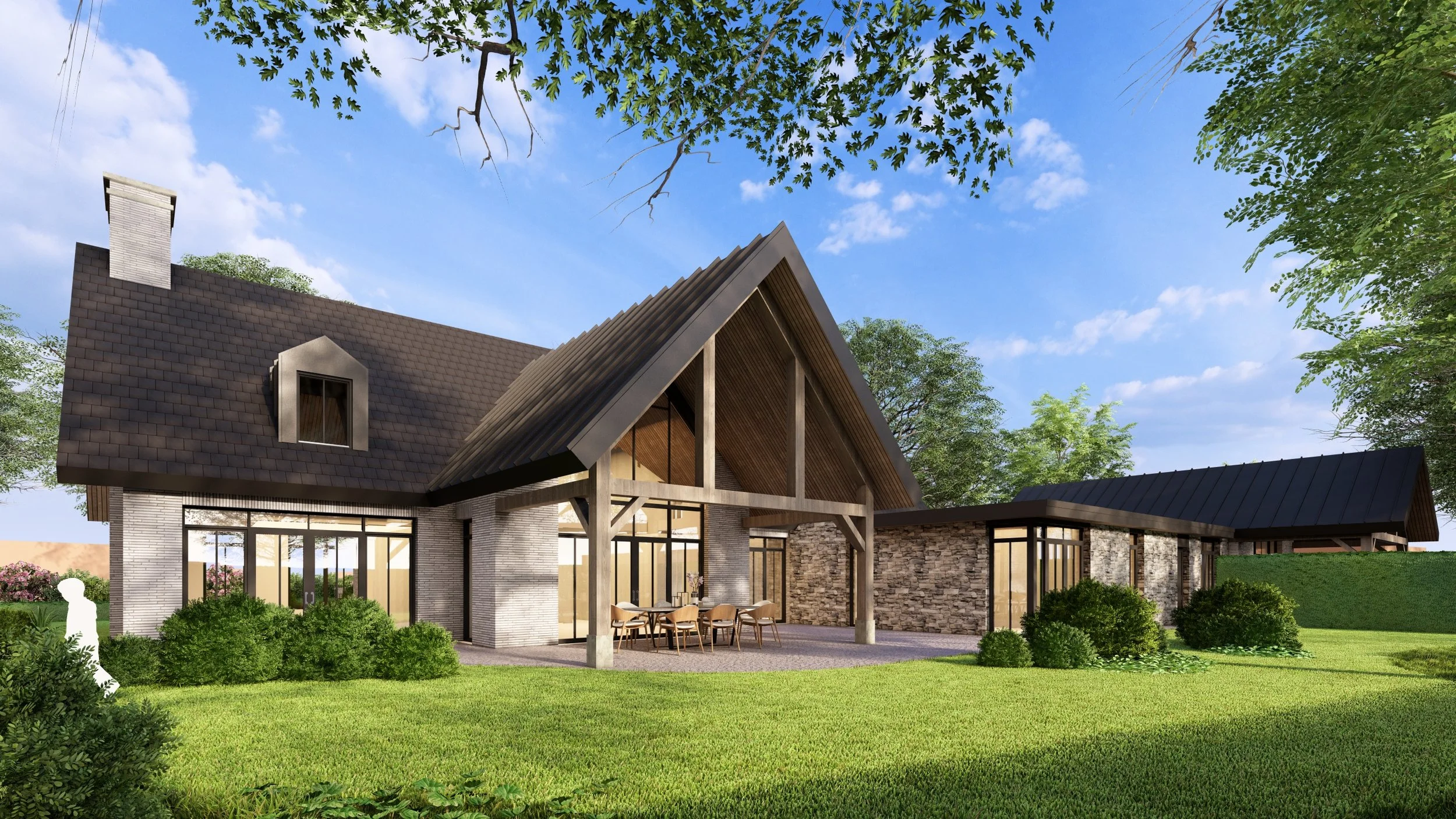 Op een prachtig perceel aan de rand van Veldhoven hebben we deze bosvilla mogen ontwerpen. De villa heeft een eigentijdse, landelijke en warme uitstraling die volledig passend is binnen het natuurrijke gebied.